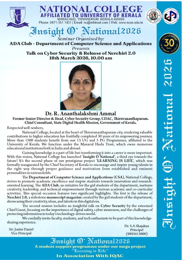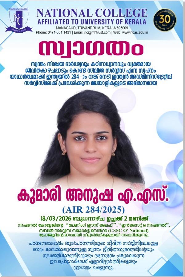 National College is home to some of Kerala’s top faculty, students, alumni and staff.